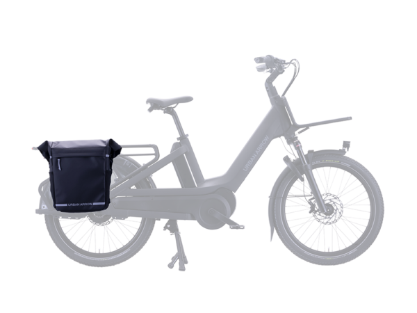 De enkele tas klik je vast aan de zijkant en heeft een inhoud van 16 liter