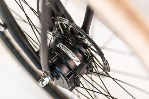 De krachtige voorwielmotor (Ananda FM 400) zorgt voor een soepele ondersteuning vanaf het eerste trapmoment. Dankzij de rotatiesensor reageert de motor vloeiend op je trapbeweging, waardoor fietsen moeiteloos aanvoelt. Met vijf ondersteuningsstanden bepaal je zelf hoeveel hulp je wilt, ideaal bij tegenwind of heuvelachtige routes.