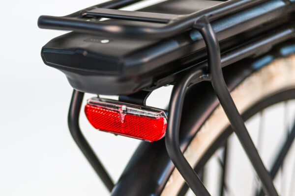 De uitneembare 626 Wh Li-ion accu biedt een indrukwekkende actieradius van tot wel 140 km, afhankelijk van omstandigheden zoals terrein en ondersteuningsstand. Opladen kan eenvoudig thuis of op kantoor; binnen ongeveer vijf uur is de accu weer volledig vol.