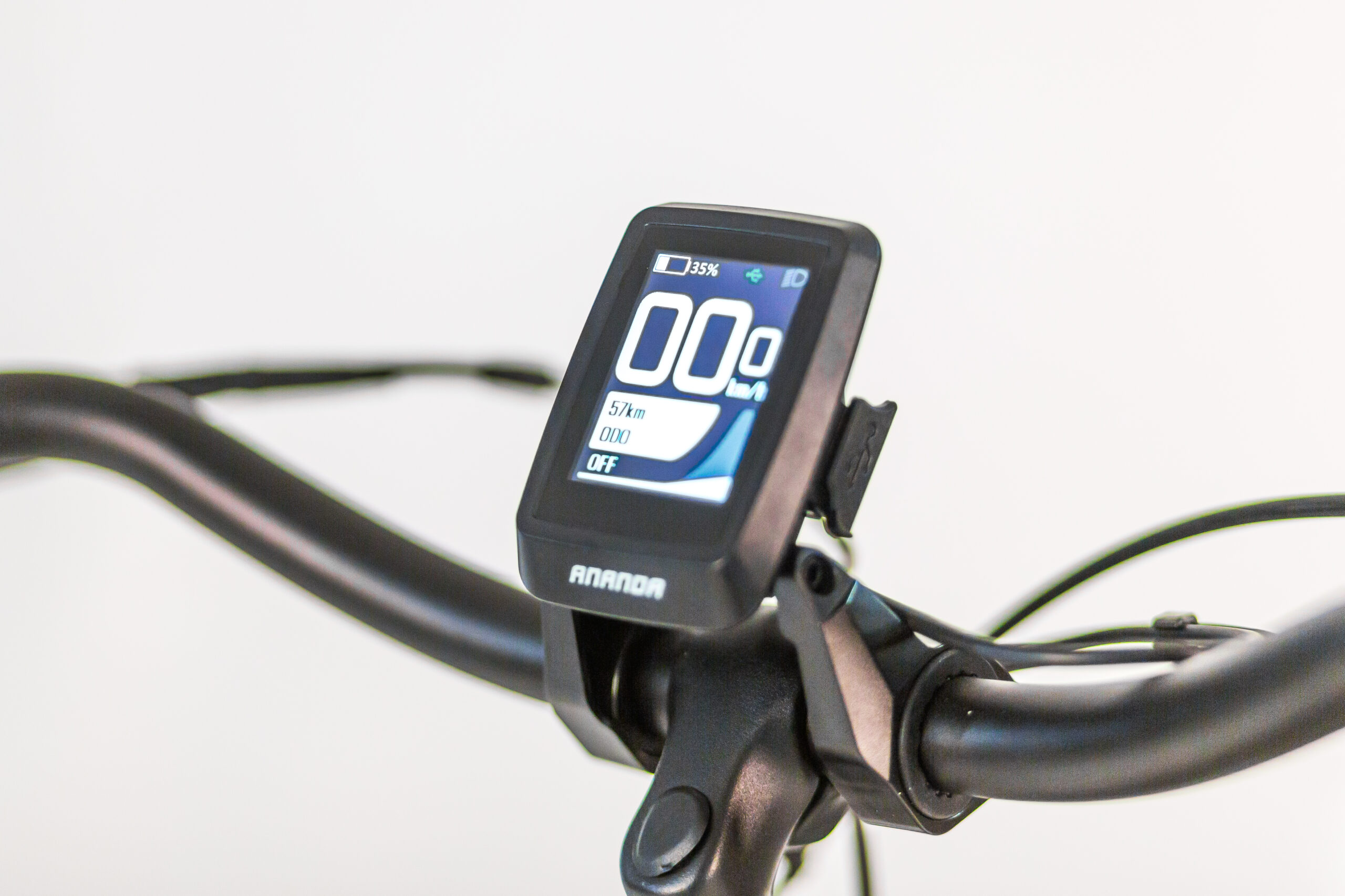 Het robuuste stalen frame met hoge instap biedt stabiliteit en een comfortabele zithouding. Met een framemaat van 55 cm en een gewicht van 27 kg voelt de fiets stevig, zonder log te zijn. Op het Ananda D16 LCD-display lees je eenvoudig je snelheid, accuniveau en ondersteuningsstand af, zodat je altijd zicht hebt op je prestaties.