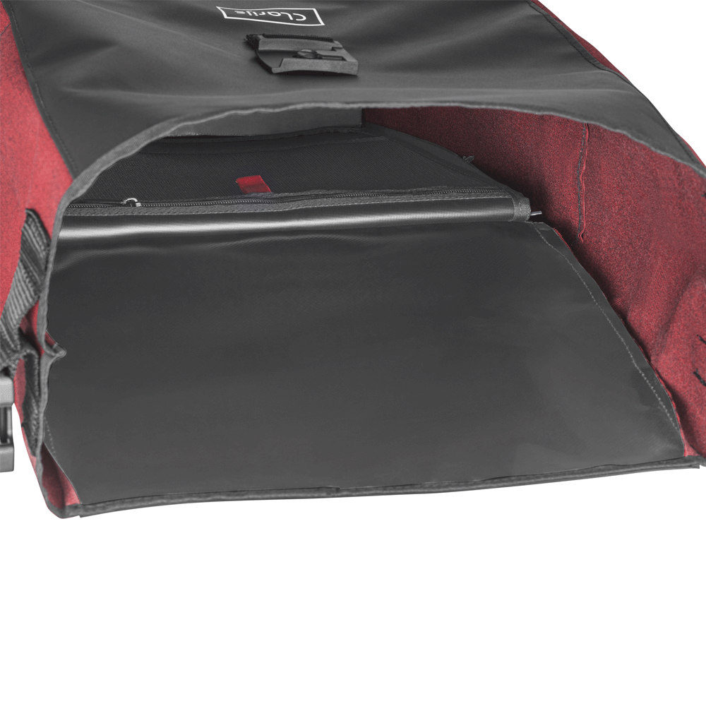 De Clarijs Solobag reCYCLEd Rood is ideaal voor iedereen die een ruime, waterdichte fietstas nodig heeft. Het ruime hoofdvak met binnenzak en verstevigde achterplaat, sluit met een praktische en waterbestendige rolsluiting. Deze sluiting is uitgevoerd met een magnetische FIDLOCK gesp.