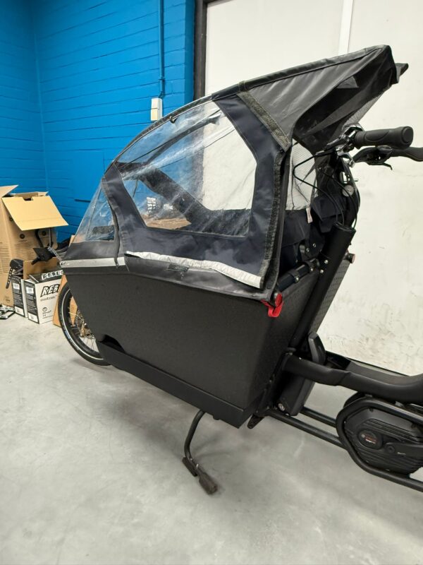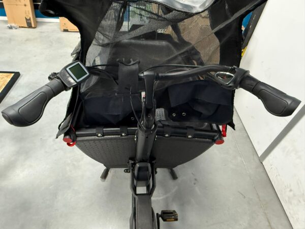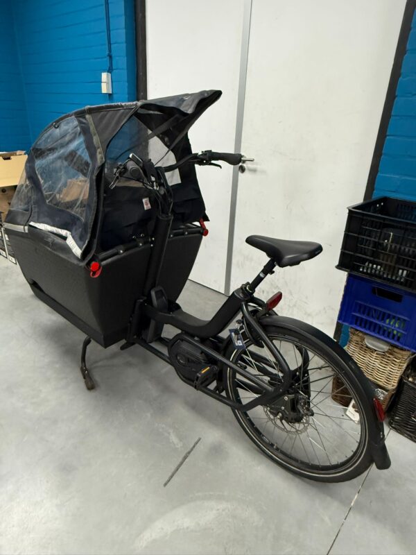 Deze Urban Arrow Family Cargo heeft de sterkste motor van het Family segment. De bak is gemaakt van EPP piepschuim, extra licht en extra veilig. Hij heeft ongeveer 12000 km gereden. Een half jaar garantie op alle elektronische onderdelen. 500 Wh accu waar je zeker 50 tot 70 km mee fietsen kunt. Inclusief Regenhuif Plus.