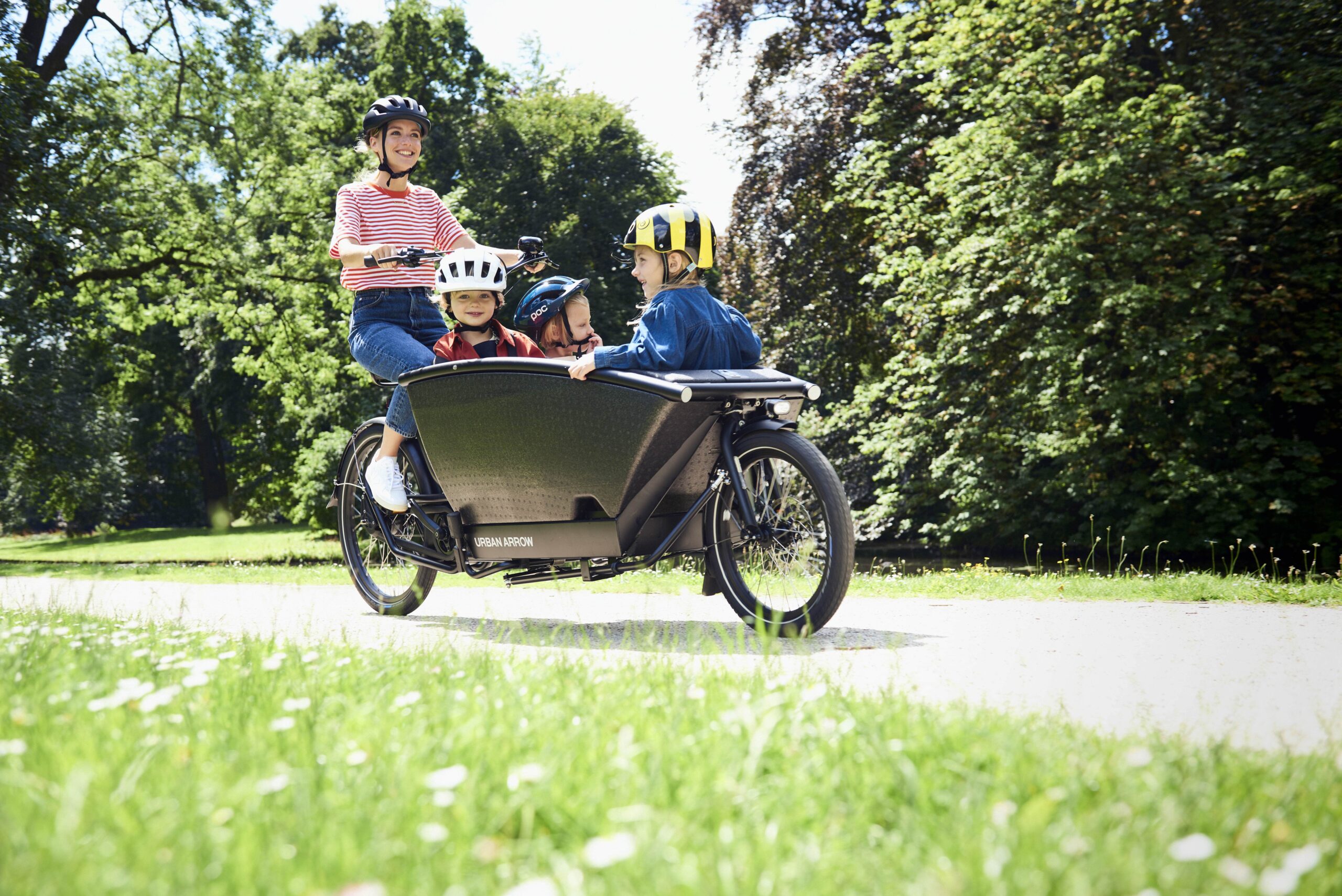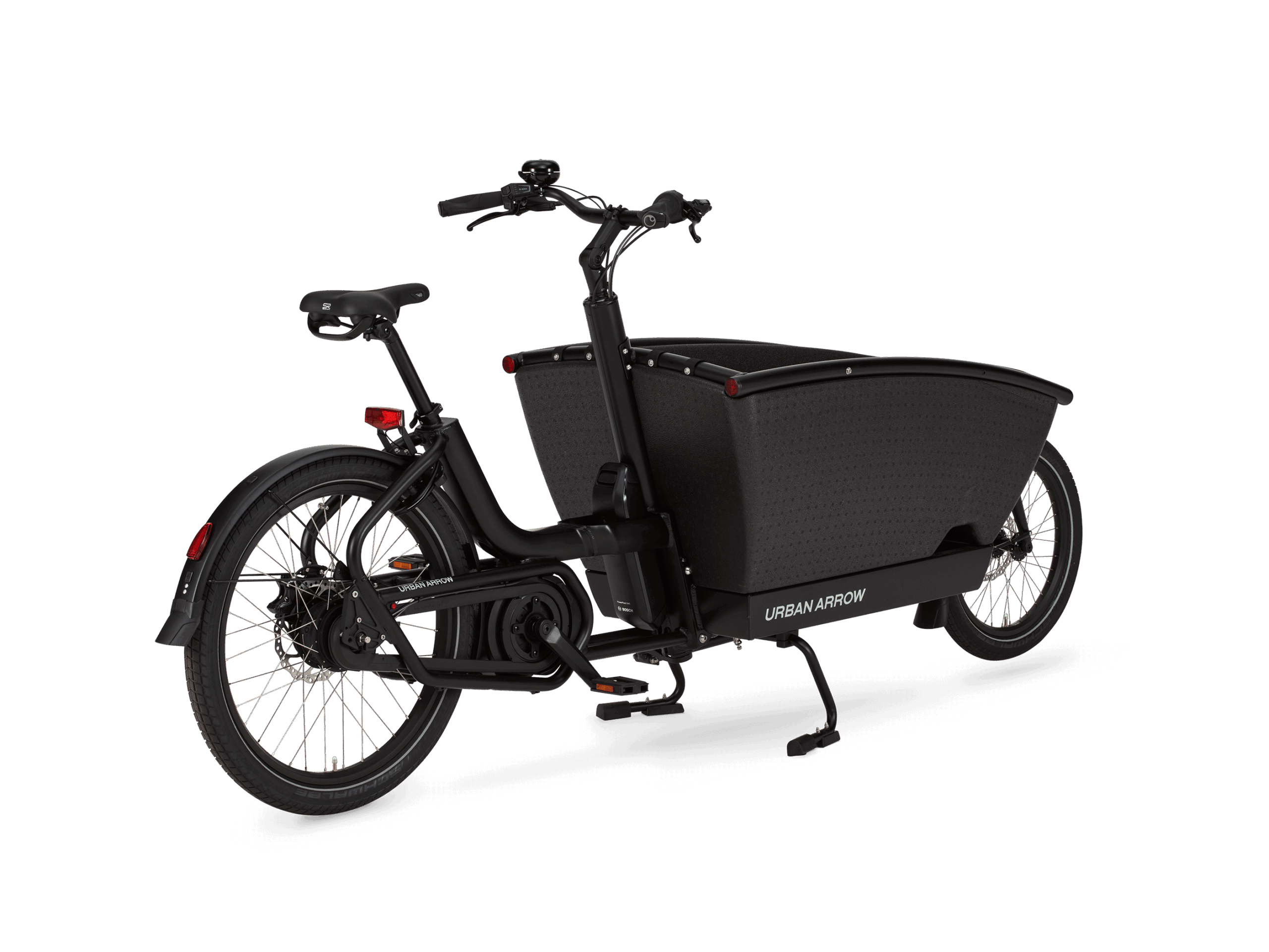 De Urban Arrow Family Active Line Plus wordt geleverd met een 400 Wh accu, gratis Regenhuif Plus, Extra bankje en Vloermatje.